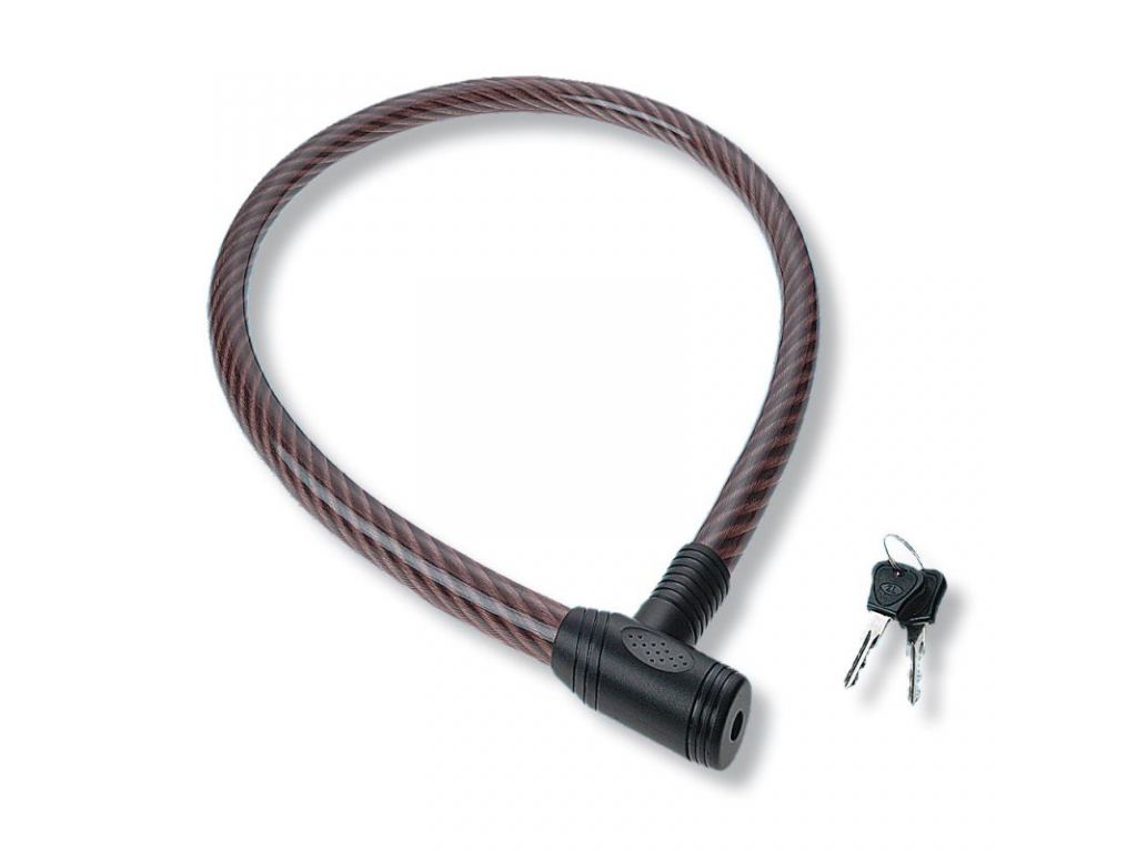 Velmi pevný zámek s ocelovým lankem. S ochranným plastovým krytem. Vyrobeno v Německu.