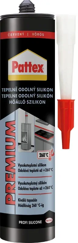 Tepelně odolný silikon PATTEX vyniká vysokou odolností vůči teplotám. Po vytvrzení odolává teplotám od -65 do 260 °C. Odolný je proti ozónu, UV záření, stárnutí i povětrnostním vlivům. Jakmile dojde k jeho vytvrzení, zůstává trvale elastický. Použít lze v interiéru i exteriéru. Vhodný je pro tmelení spojů vystavených vysokým teplotám typu trouby, topení, motory, klimatizace, pece a komínové konstrukce. Tepelně odolný silikon PATTEX nabízí vysokou přilnavost k různým materiálům, jako je sklo, nemastné dřeviny, smalt, silikonová pryskyřice, sklolaminát, dlaždice, glazurovaná keramika, přírodní a syntetická vlákna a mnohé z barvených povrchů.