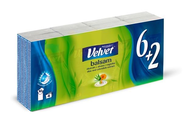 - Velvet papírové kapesníčky Balsam 4vrstvé 6+2ks