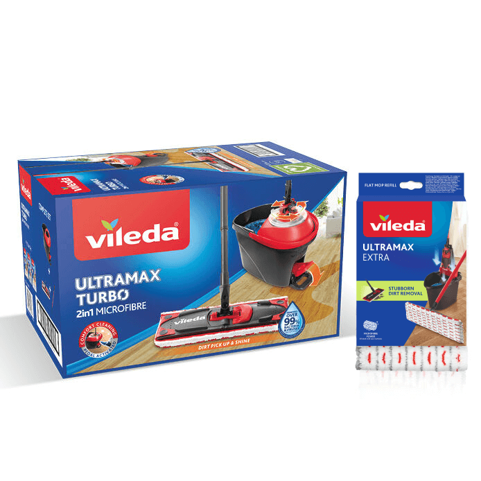 Vileda Ultramax TURBO s náhradou navíc Microfibre 2v1 plochý 163425na Prodejne 10 ks990,00 Kč/ ks818,18 Kč bez DPH